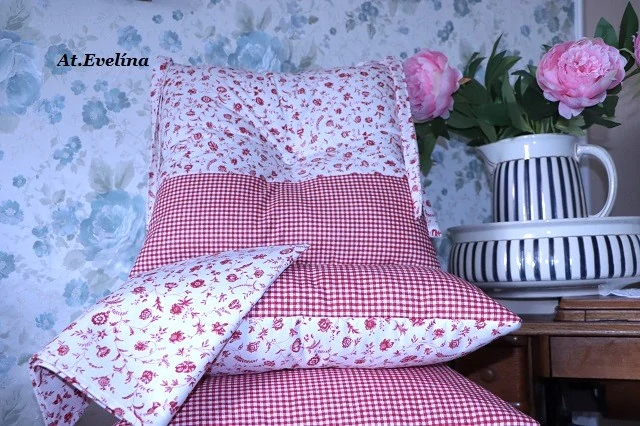 Sada 4ks sedáků 40x40 cm na židli popínavý květ+červené károSkladem 1 ks800 Kč/ ks