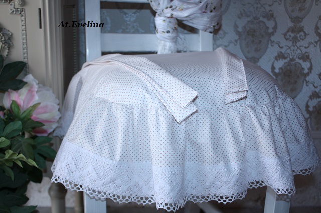 Sedák na židli 40x40 cm s POVLAKEM bílý s puntíkem a krajkovým volánem a mašlemiSkladem 6 ks590 Kč/ ks